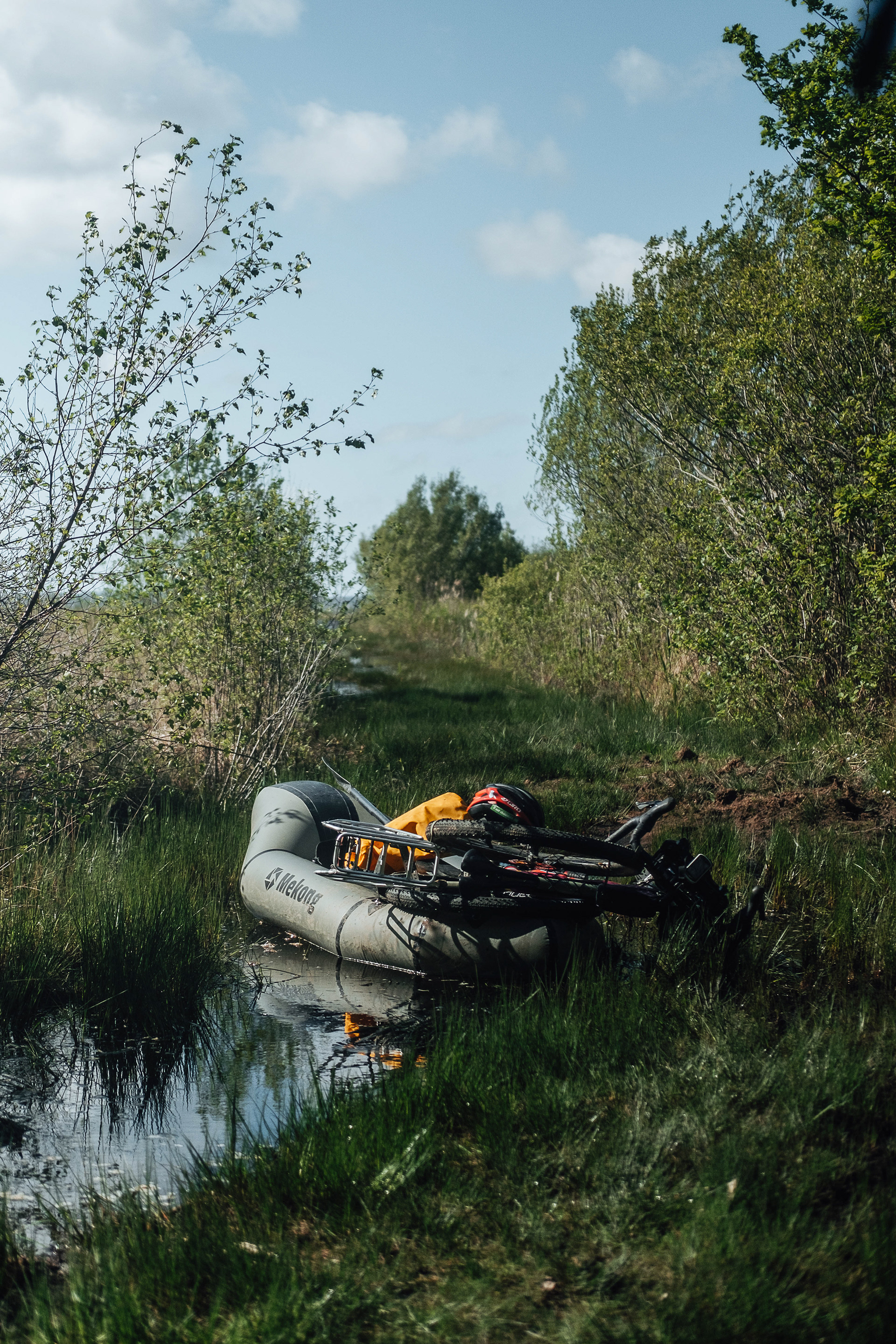 À Cazaux, nous nous décidons à remettre les packrafts à l’eau pour rejoindre Biscarrosse. Une petite houle nous rappelle la faible quantité d’air qui nous sépare d’une si grande étendue d’eau. Nous sortons du petit port et nous avançons pour longer le bord du lac. Nous arrivons en plein vent, sur le lac Cazaux. Au bout d’un kilomètre Antoine accélère ses coups de pagaie, mû par la détresse d’un canoë en pleine perte de pression. Nous rejoignons le rivage à la hâte, déconcertés de n’avoir pu finir notre traversée, mais heureux de ne pas l’avoir terminée dans l’eau.
